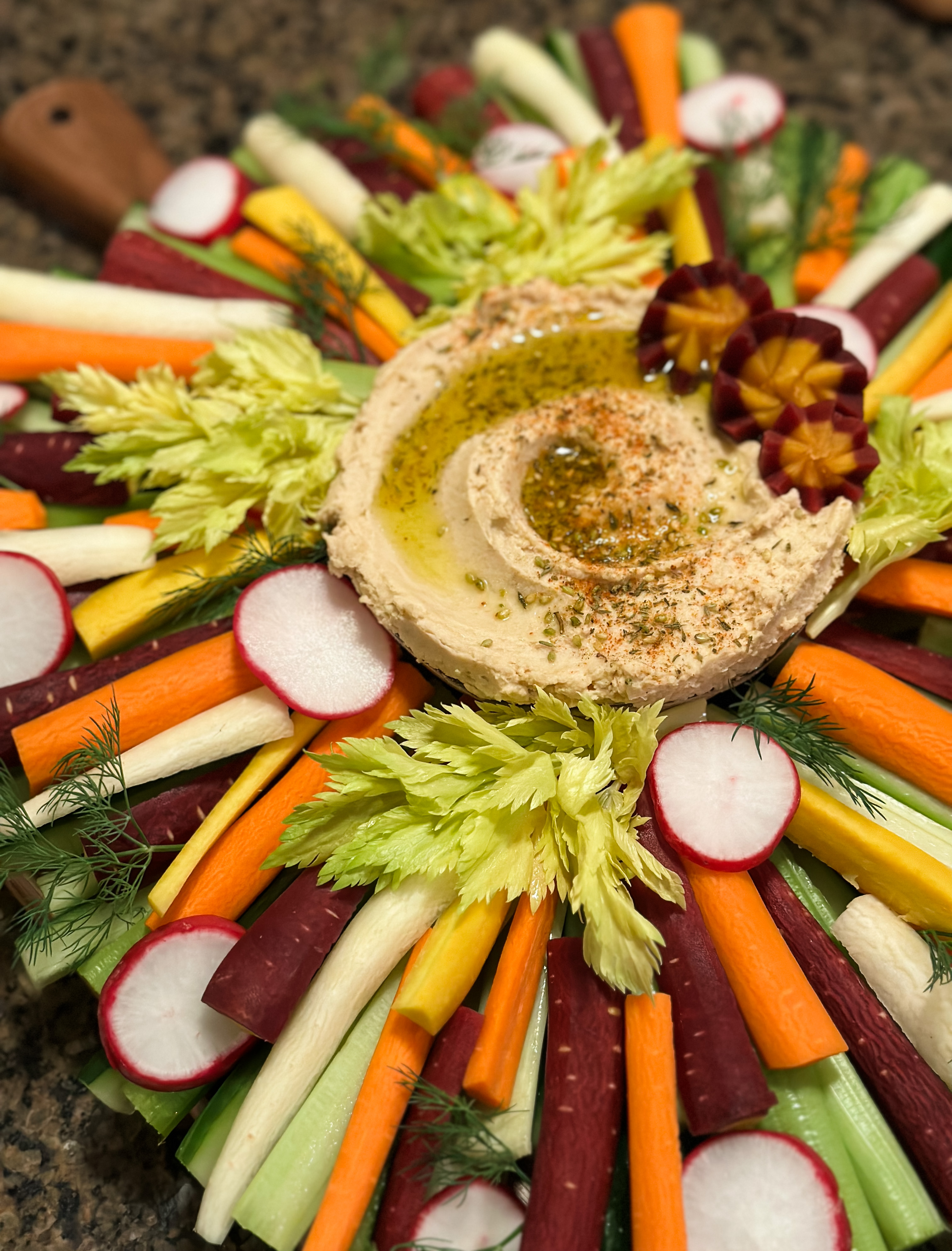 Vegetable Board-Includes One Dip ~ $5/person (additional $1/person for 2 dips)